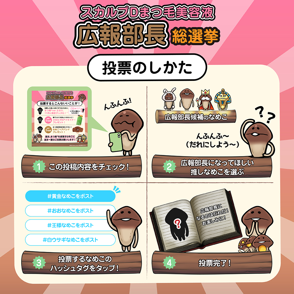 10月1日(水)に投稿されるスカルプDまつ毛美容液公式Xの投票投稿から、お好きななめこを選んで投票!