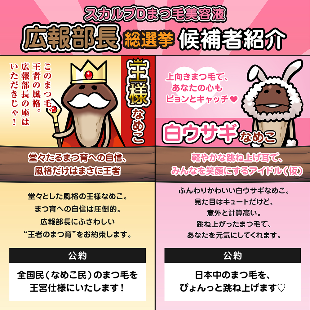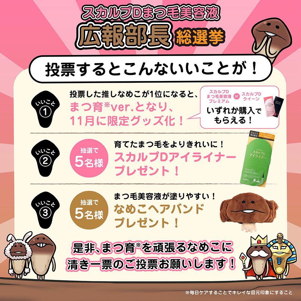 スカルプDまつ毛美容液×なめこ栽培キット 広報部長総選挙キャンペーン